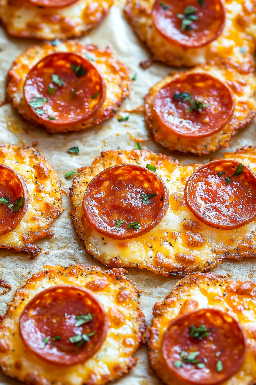 Imagine biting into a perfectly crisp chip packed with gooey, melted cheese and the smoky, savory flavor of pepperoni. It’s like the best parts of pizza in a crunchy, bite-sized snack! Whether you’re on a keto diet, looking for a gluten-free appetizer, or just need a quick fix for your pizza cravings, these chips are here to save the day.
