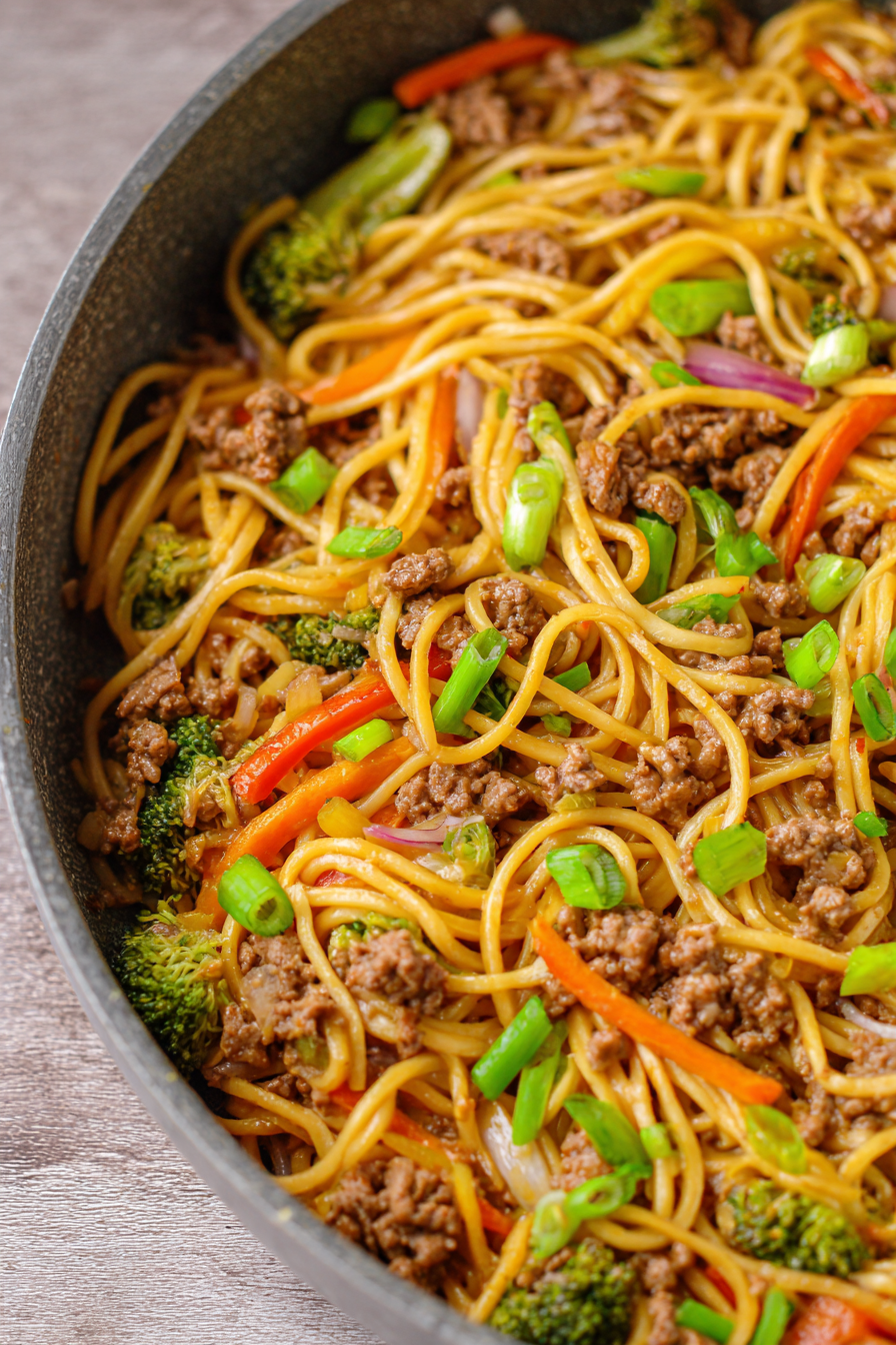 Chicken Lo Mein: Swap ground beef for thinly sliced chicken breast or thighs.