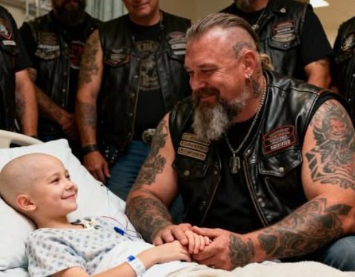 A chance encounter at Saint Mary’s Hospice changed two lives forever. Big John, a 300‑pound biker visiting his dying brother, accidentally entered Room 117 and met Katie, a terminally ill seven‑year‑old girl abandoned by her parents. Her calm acceptance of death and her fear of dying alone moved him deeply. That night, he promised she…