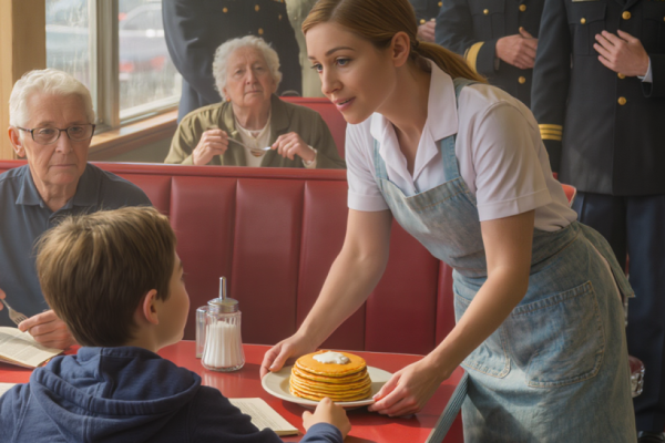 A Waitress Secretly Fed a Lonely Boy Every Morning — Until Four Black SUVs Pulled Up Outside the Diner and Soldiers Walked In With a Letter That Made the Entire Town Fall Silent